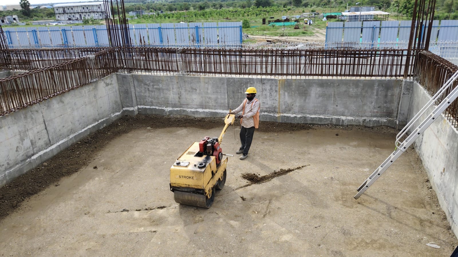 पोडियम बिल्डिंग फ़ुटिंग जीएसबी फ़ाइलिंग और पीसीसी मार्किंग